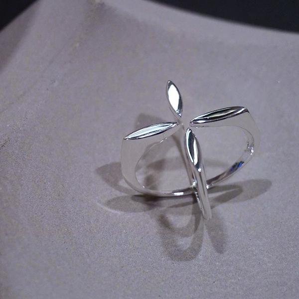 Bague Croix Fleur Minimaliste Réglable — Argent Sterling