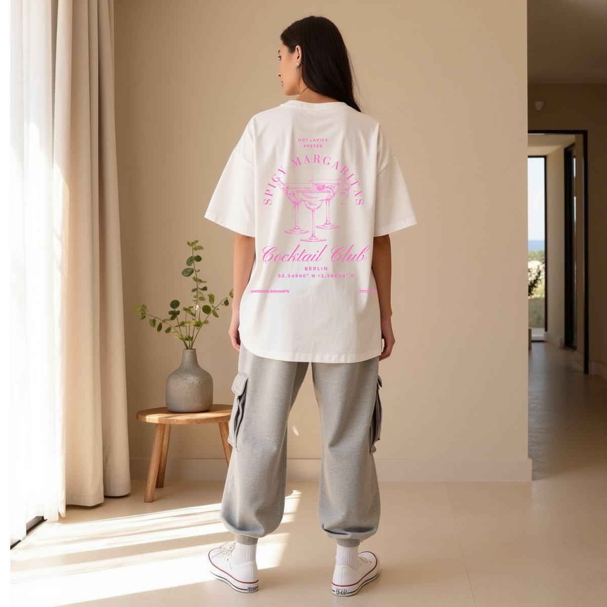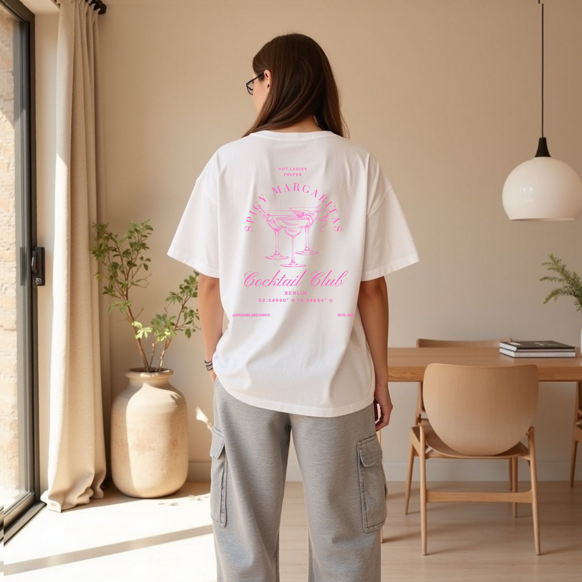 T-shirt Oversize Blanc "Hot Ladies Prefer Spicy Margaritas" — GOOD GIRL BAD HABITS